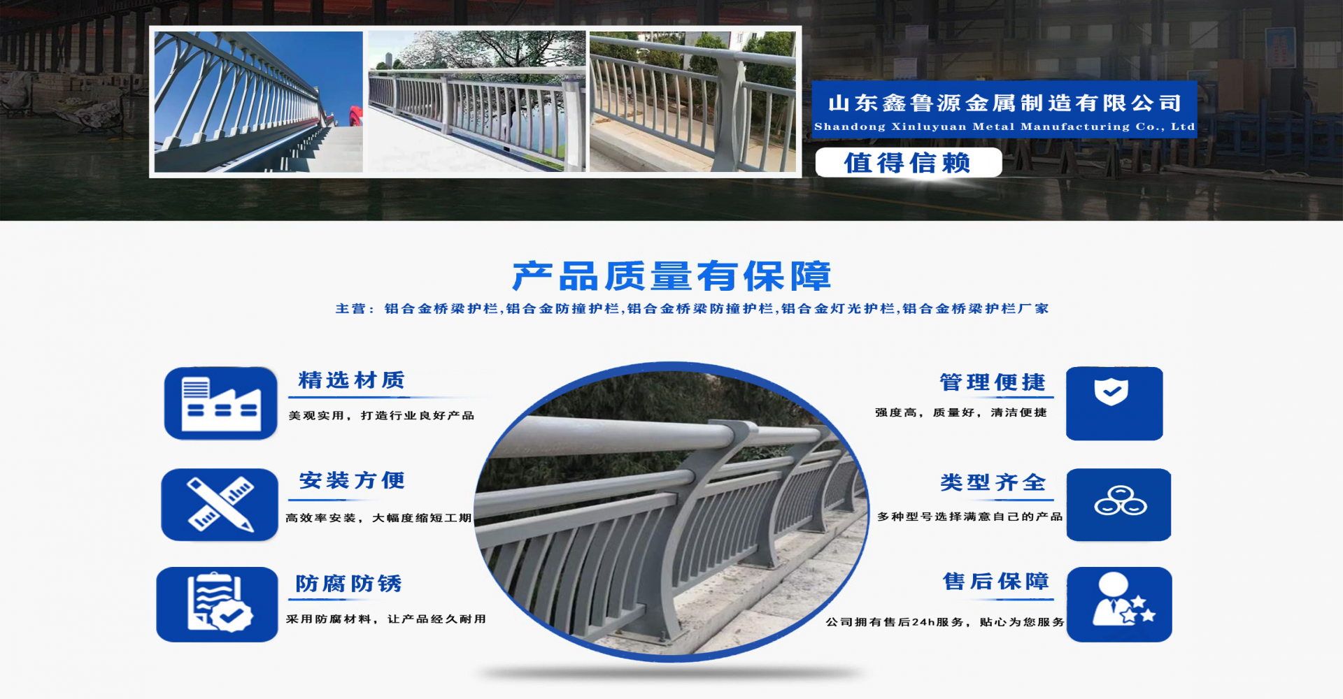 山東鑫魯源金屬制造有限公司主要經營:鋁合金橋梁護欄,鋁合金防撞護欄,鋁合金橋梁防撞護欄,鋁合金燈光護欄,不鋁合金橋梁護欄廠家,環(huán)波梁橋梁護欄,環(huán)波梁防撞護欄。質量可靠、經濟實用的顯著特點。公司為客戶提供可靠售后保障,堅持“以品質立足、服務求發(fā)展”,愿與各界朋友精誠合作、攜手發(fā)展! 服務優(yōu)勢:真誠的服務理念、完善的服務體系。公司專業(yè)力量充足;工程案例眾多、從業(yè)經驗豐富;公司以可靠質量的產品,合理的價格,完善的售后服務,能夠滿足市場各個企業(yè)的需求?! ∑髽I(yè)精神:執(zhí)著追求 持續(xù)創(chuàng)新執(zhí)著追求,就是堅持不懈、堅定從容,專注于自己的事業(yè),把能做的事情做好,不斷克服困難、把握機遇,贏得未來?! 〕掷m(xù)創(chuàng)新,就是生命不息、創(chuàng)新不止,通過持續(xù)實施技術創(chuàng)新、管理創(chuàng)新、市場創(chuàng)新,獲取持續(xù)的競爭優(yōu)勢。...